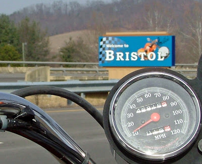 Turning onto 19E north, I’m on my way…it feels really good. Continuing on 19E North will bring you into Bristol…I stopped and took this picture. I’ve always planned on taking this picture, so I’m quite proud of myself, I actually remembered to plan the stop for it. It’s on a busy four lane road, so you have to actually remember to stop, and try not to just dump the brakes and lean to the left…or you’ll get run over by the tailgater in back of you. This sign is just after the exit for the Bristol Drag strip. Not to be confused with the Bristol Racetrack…the drag strip is a tad earlier than the racetrack.